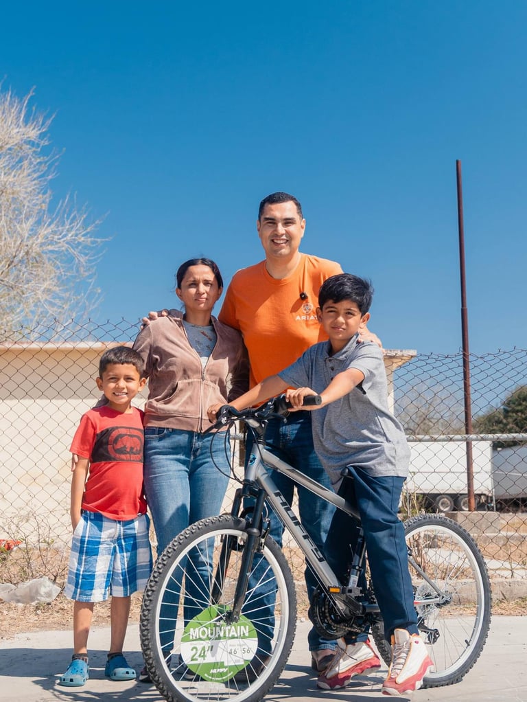 Como parte de las actividades de vinculación social en la zona rural, se realizó la entrega de una bicicleta nueva a un menor de nombre Mauricio en el Ejido Santa Librada. Este acto responde al cumplimiento de un compromiso establecido previamente por Roberto Lee durante una visita anterior a la comunidad.